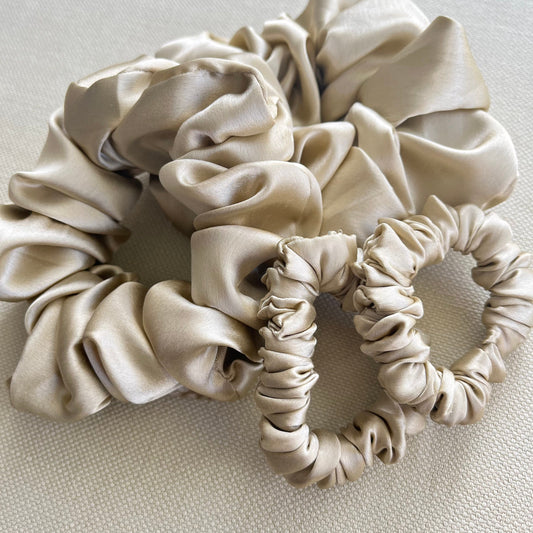 Champagne Satin Scrunchies Set - Handmade Silk Hair Accessories