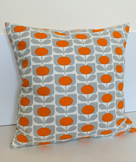Orange & Grey Retro Cushion Covers, Large Orla Kiely 18” Square Cushion