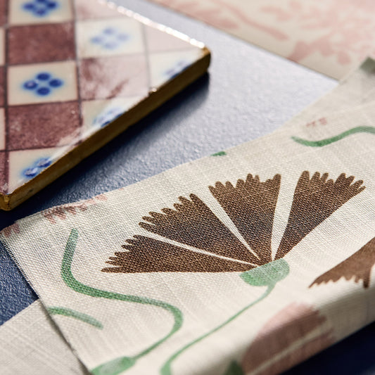 Scion Fringed Poppy Print Dusk Pink/Chestnut Fabric By The Metre