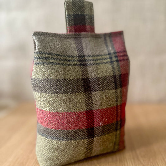 Large Hunter Green Tartan Door Stop: Rustic Farmhouse Home Decor