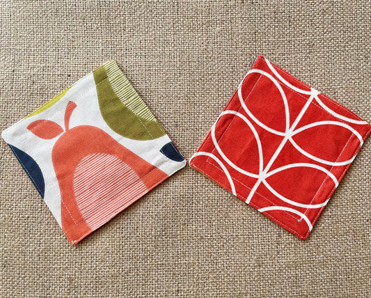 Orla Kiely Retro Drinks Coasters - Set of 2, Scribble Pear & Red Stem