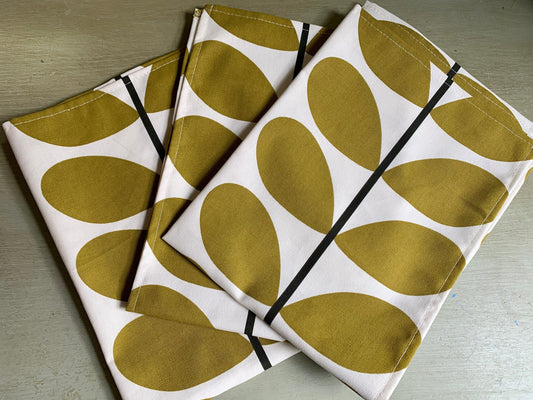 Retro Sweet Pea Orange Tea Towels, Orla Kiely Fabric, Set of 3, Singles, Handsewn