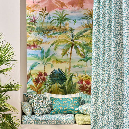 A lively, pattern-rich collection inspired by the traditions of Indian textile design. Indira brings together painterly florals, paisleys and scenic panels in joyful colourways, made for expressive, contemporary interiors.