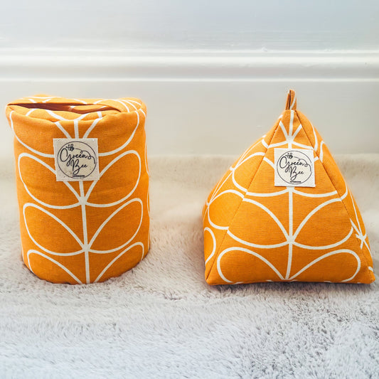 Retro Orange Orla Kiely Fabric Coasters x 2 - Papaya Stem & Sweet Pea, Set of Double-Sided Cotton Drinks Mat Mid Century Scandi Print