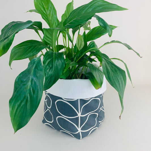 Orla Kiely Cool Grey Stem Plant Pot - Linen Storage Basket, Indoor Planter