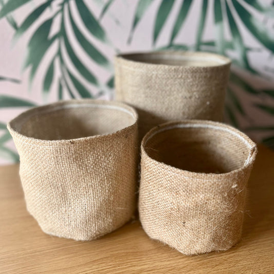 Rustic Hessian Burlap Plant Pot Cover, Storage Basket, Mid Century Chic, House Plant Cover, Indoor Planter