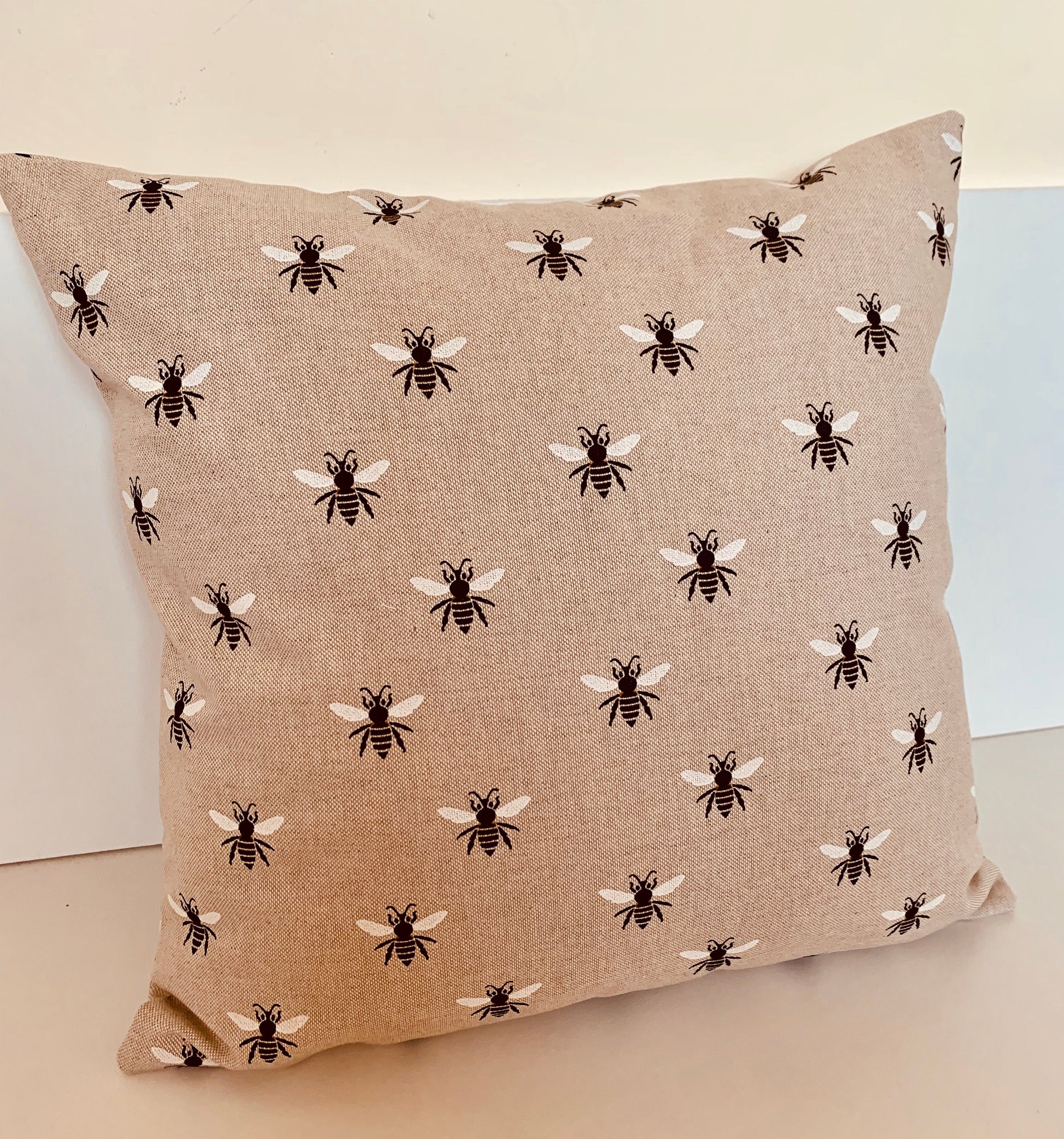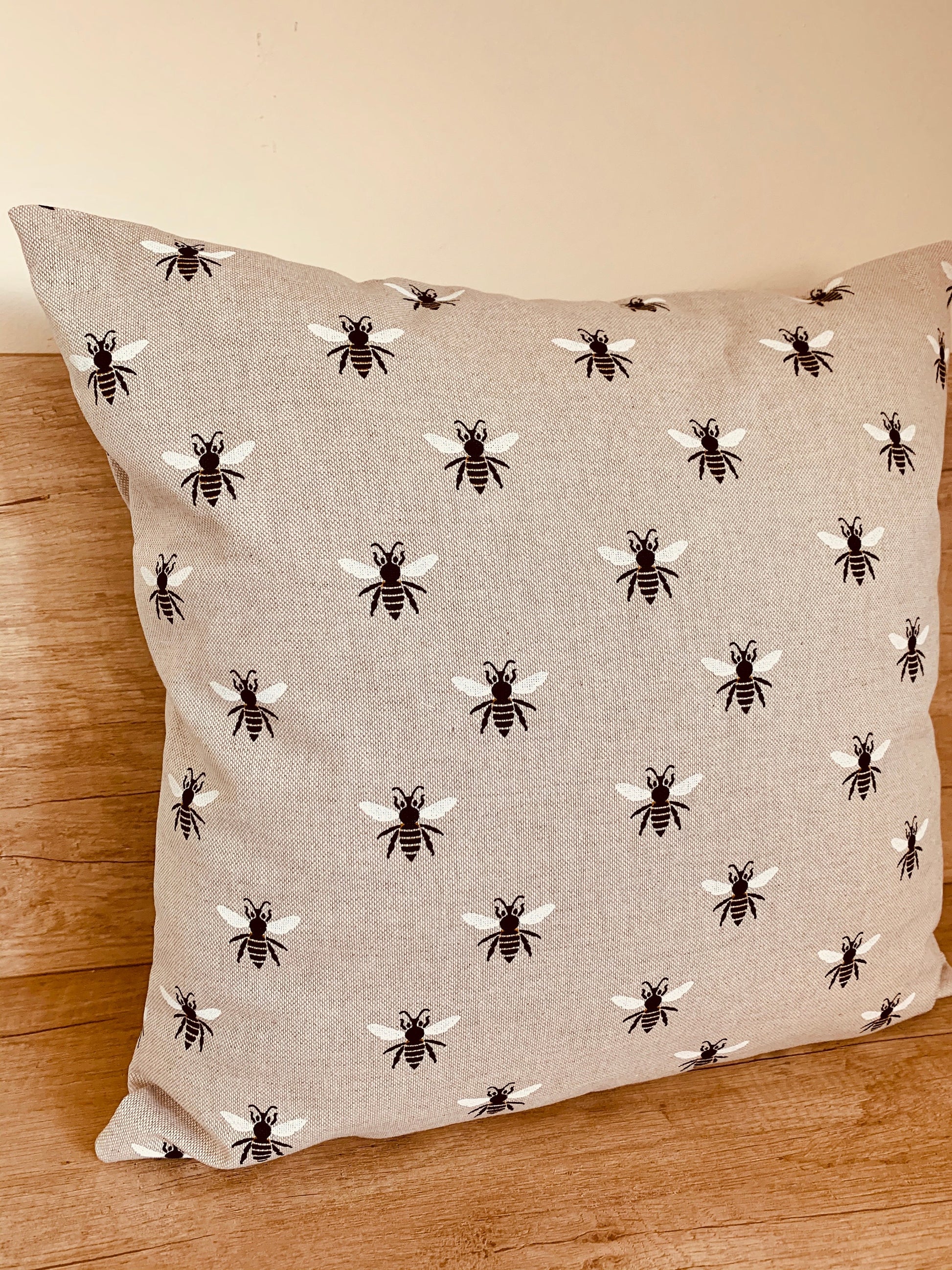 Bumble Bee Linen Cushion Cover: Reversible, Handmade Design