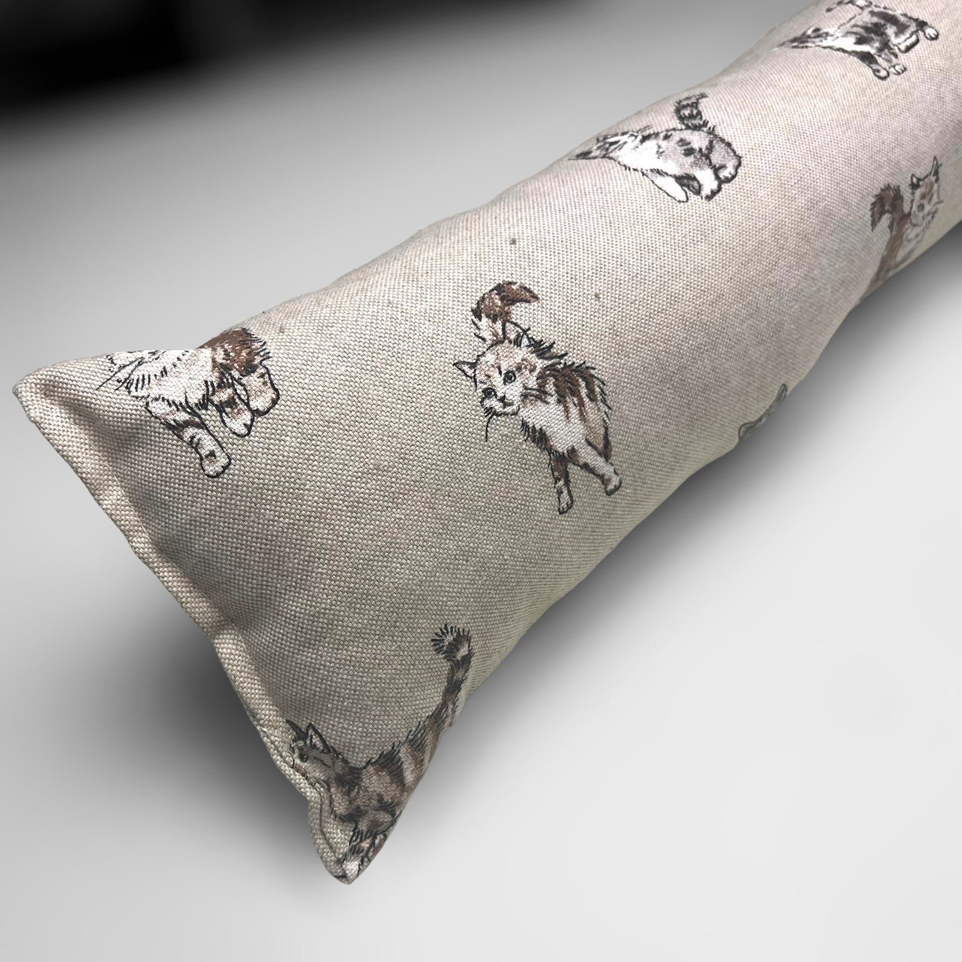 Bring a playful charm to your home with our Cat Printed Linen Draught Excluder.