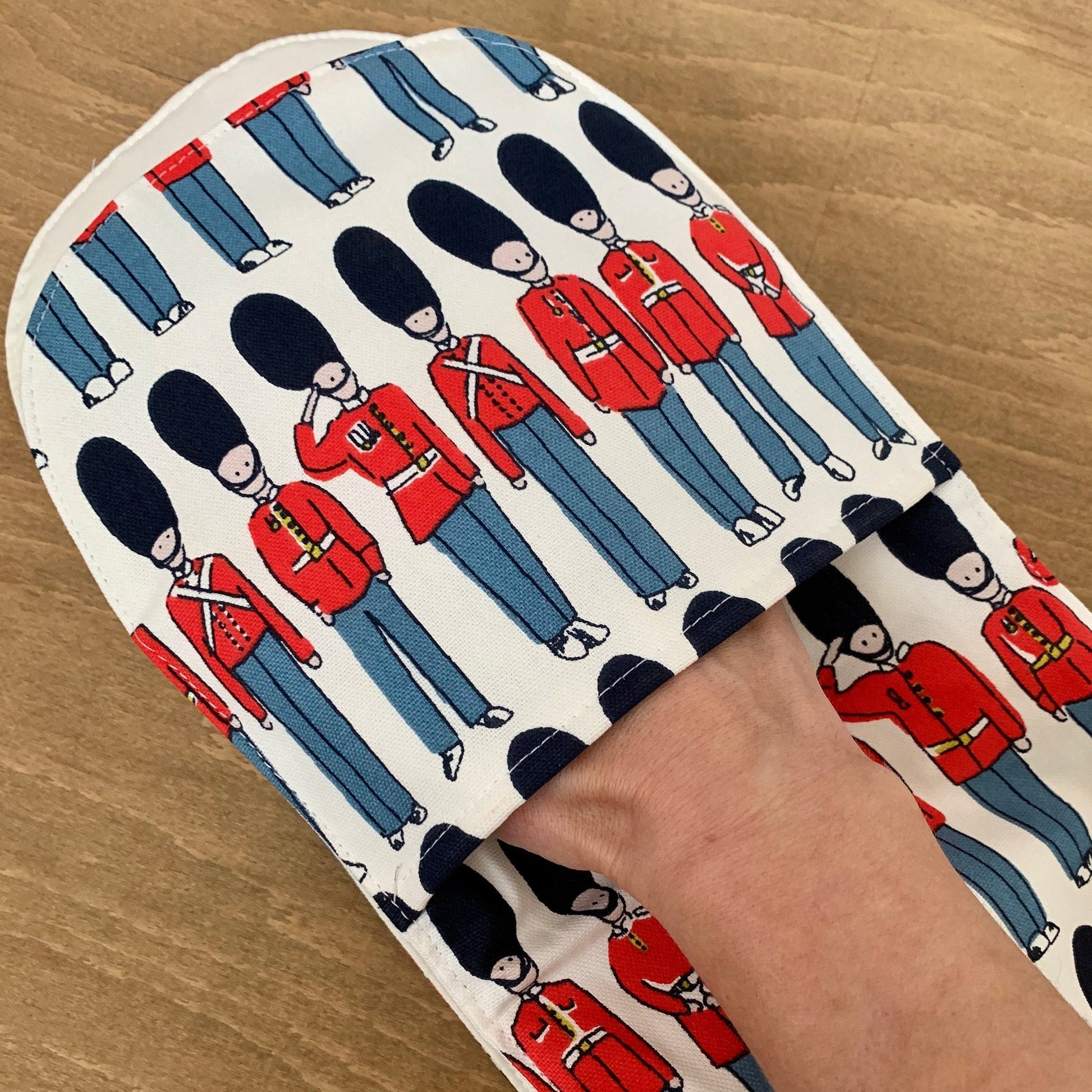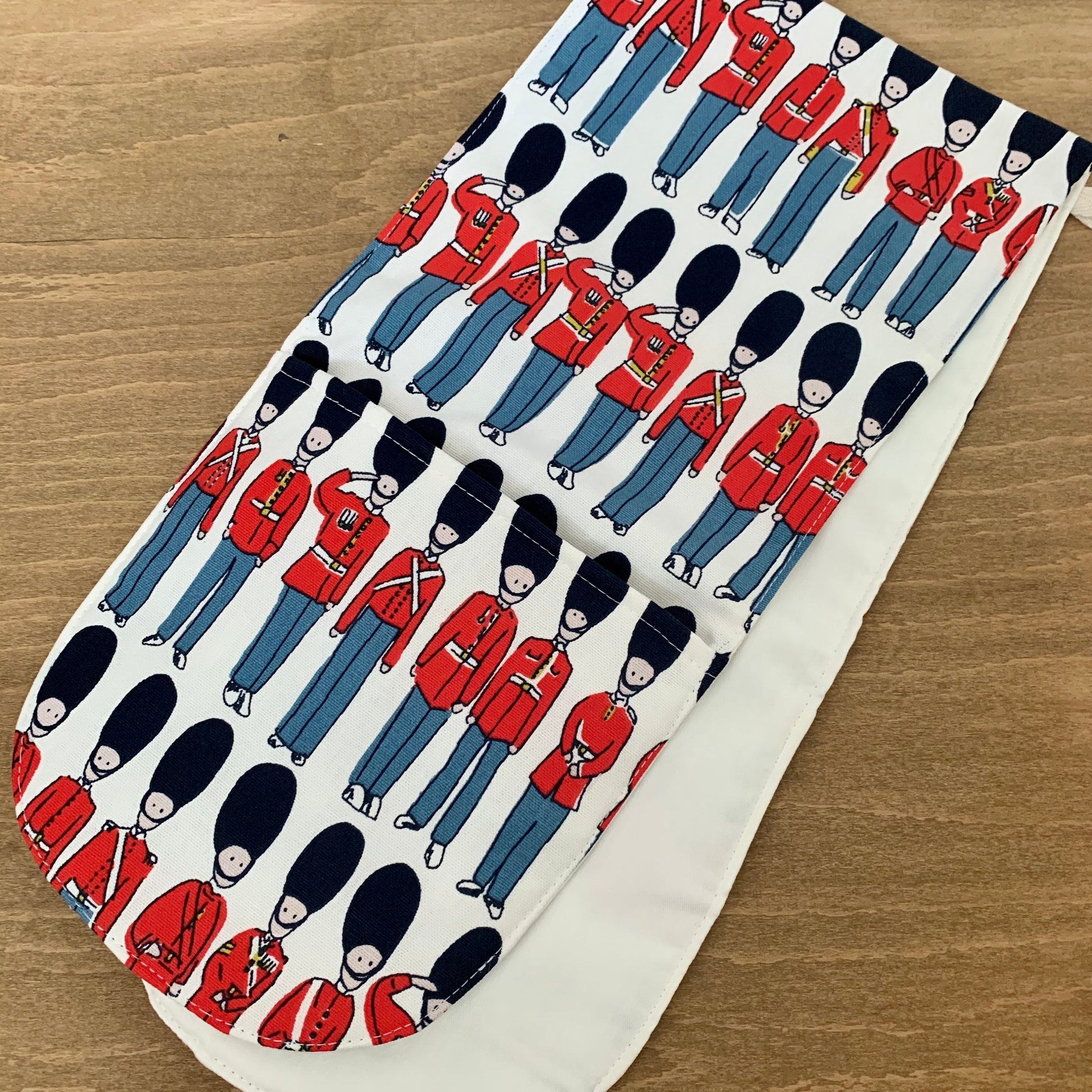 Elevate your kitchen and dining experience with our exquisite handmade Cath Kidston fabric Oven Gloves and tea towels. Infused with the quintessentially British charm of Cath Kidston's designs, these pieces are sure to brighten any culinary space. The London Guard design, featuring the iconic Queens Beefeater guards, adds a quirky and bold touch that's impossible to ignore.