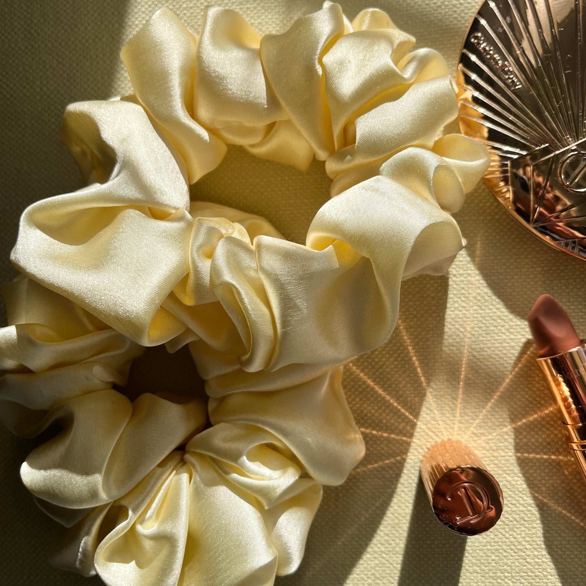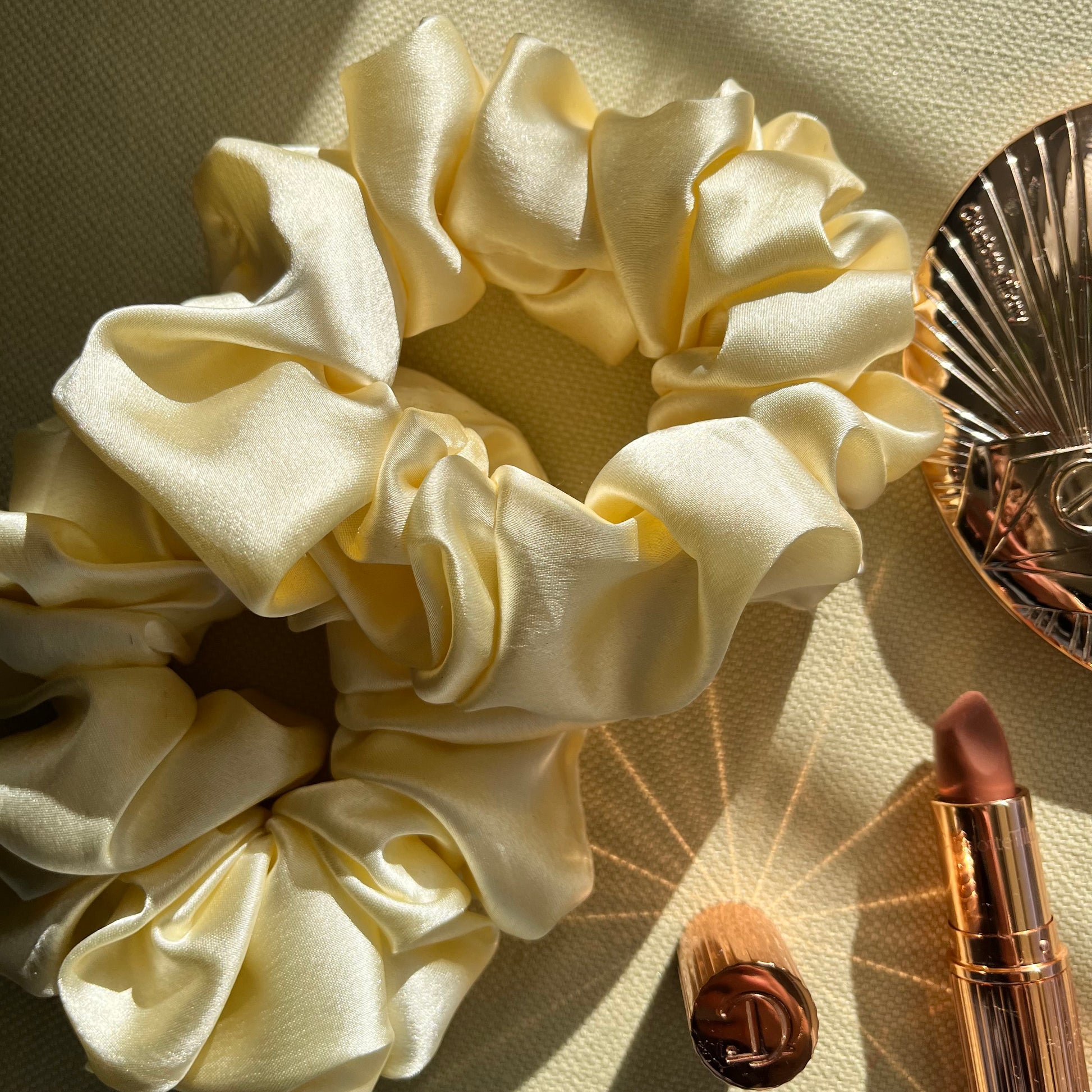 Cream Satin Scrunchies Set - Handmade Silk Hair Accessories
