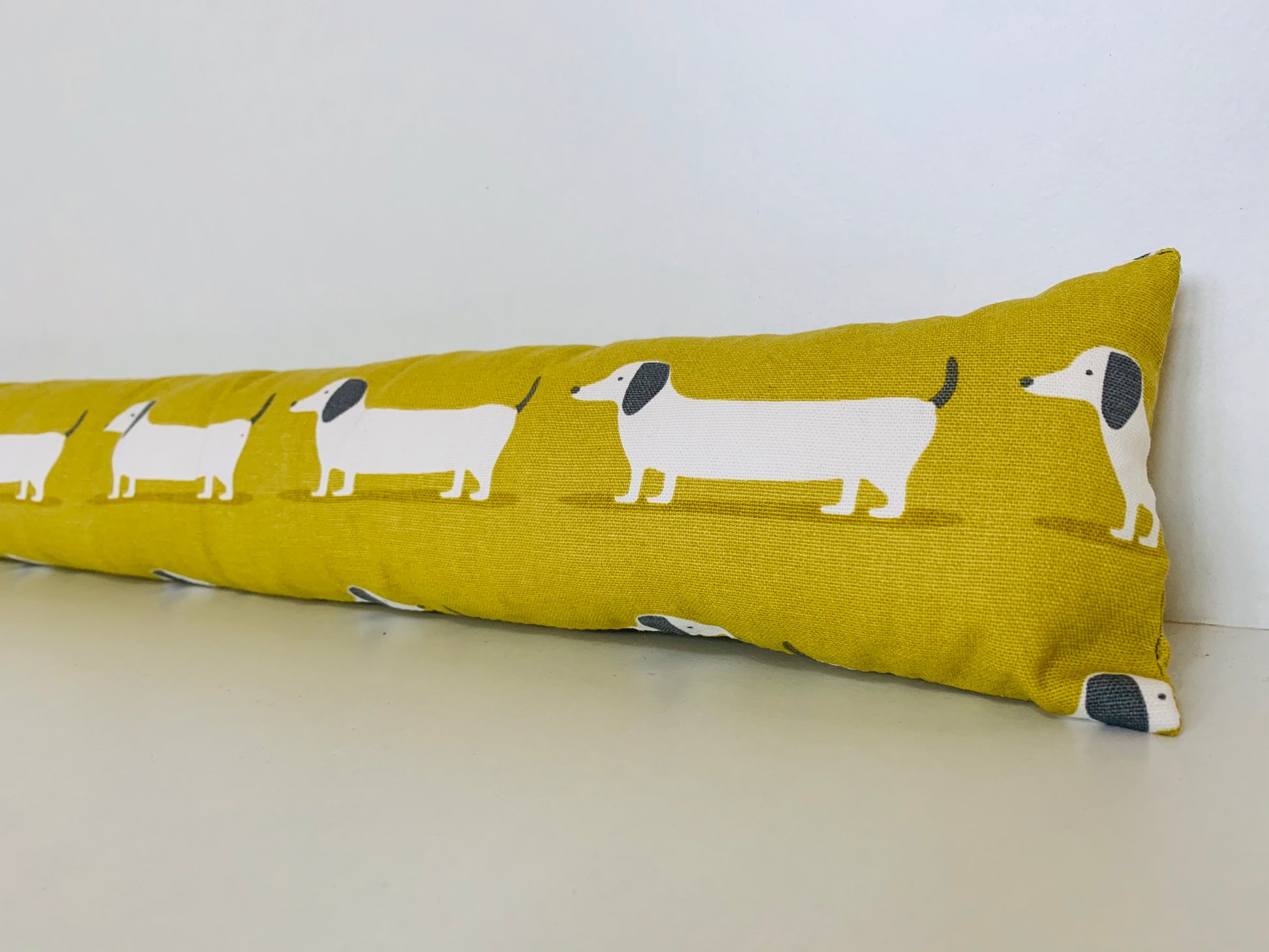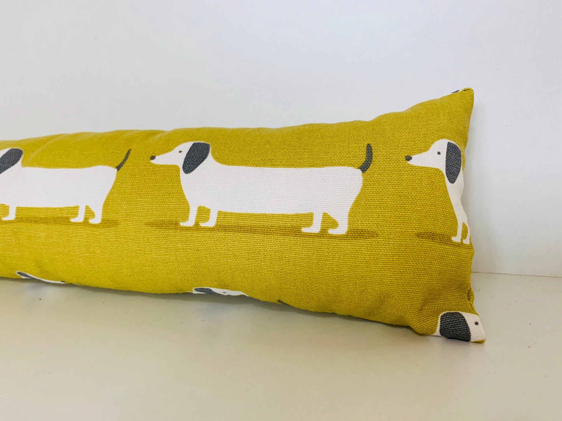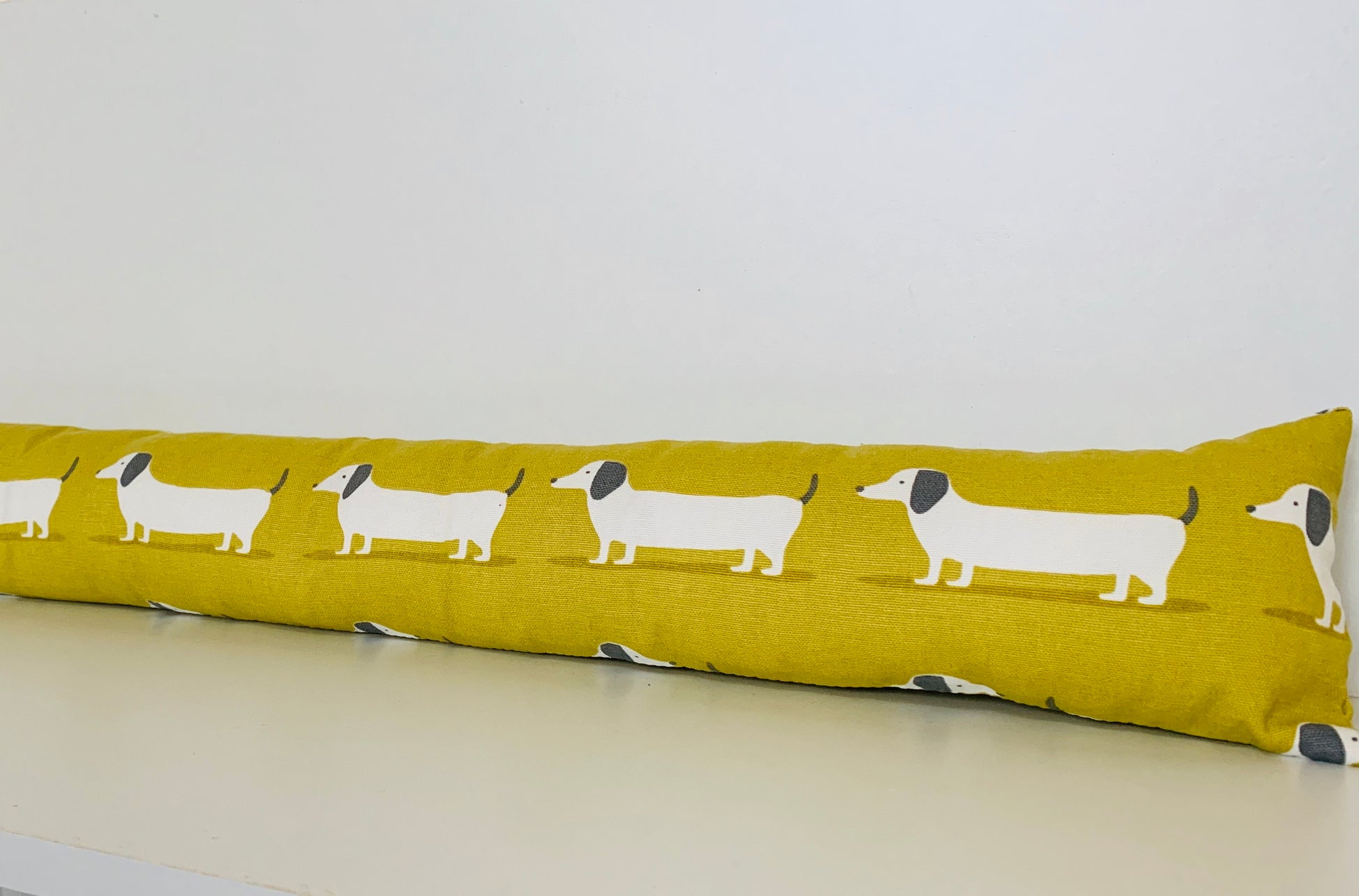 Dachshund Yellow Print Draught Excluder – Weighted, Bright Dog Lover’s Decor