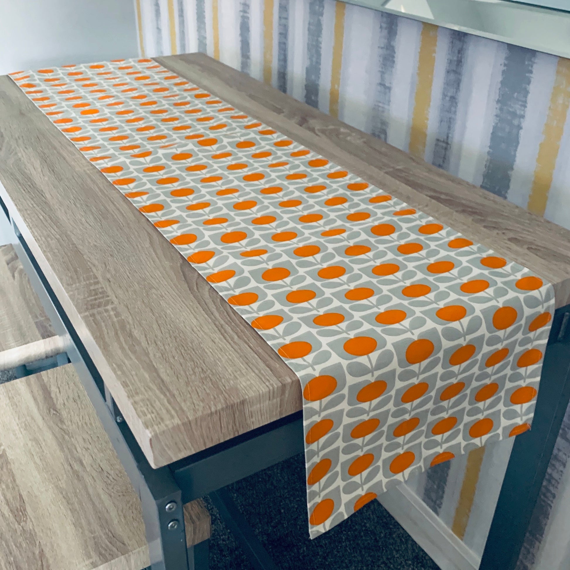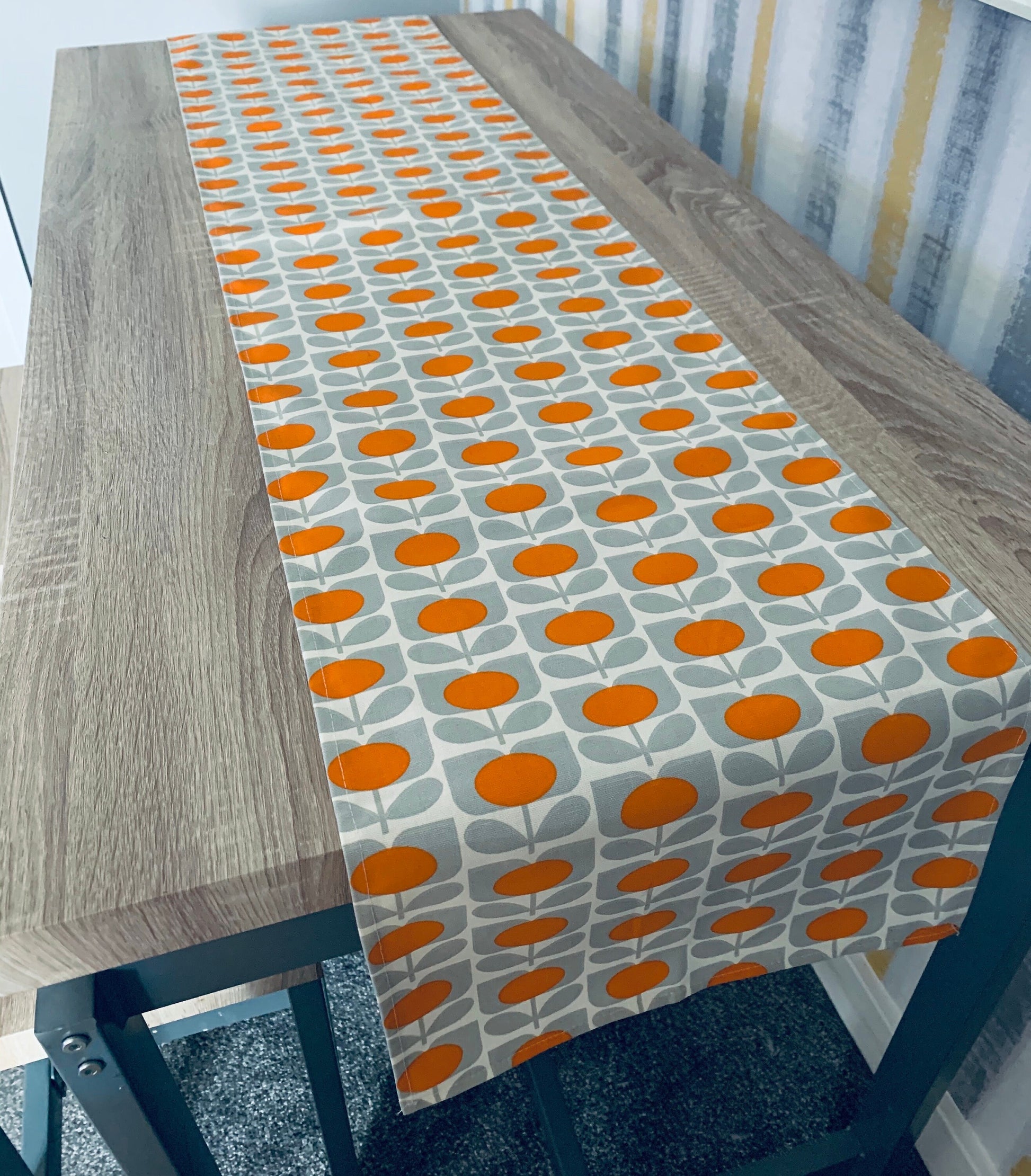 Grey & Orange Flower Orla Kiely Table Runner: Retro Decor, Sizes 120cm-320cm