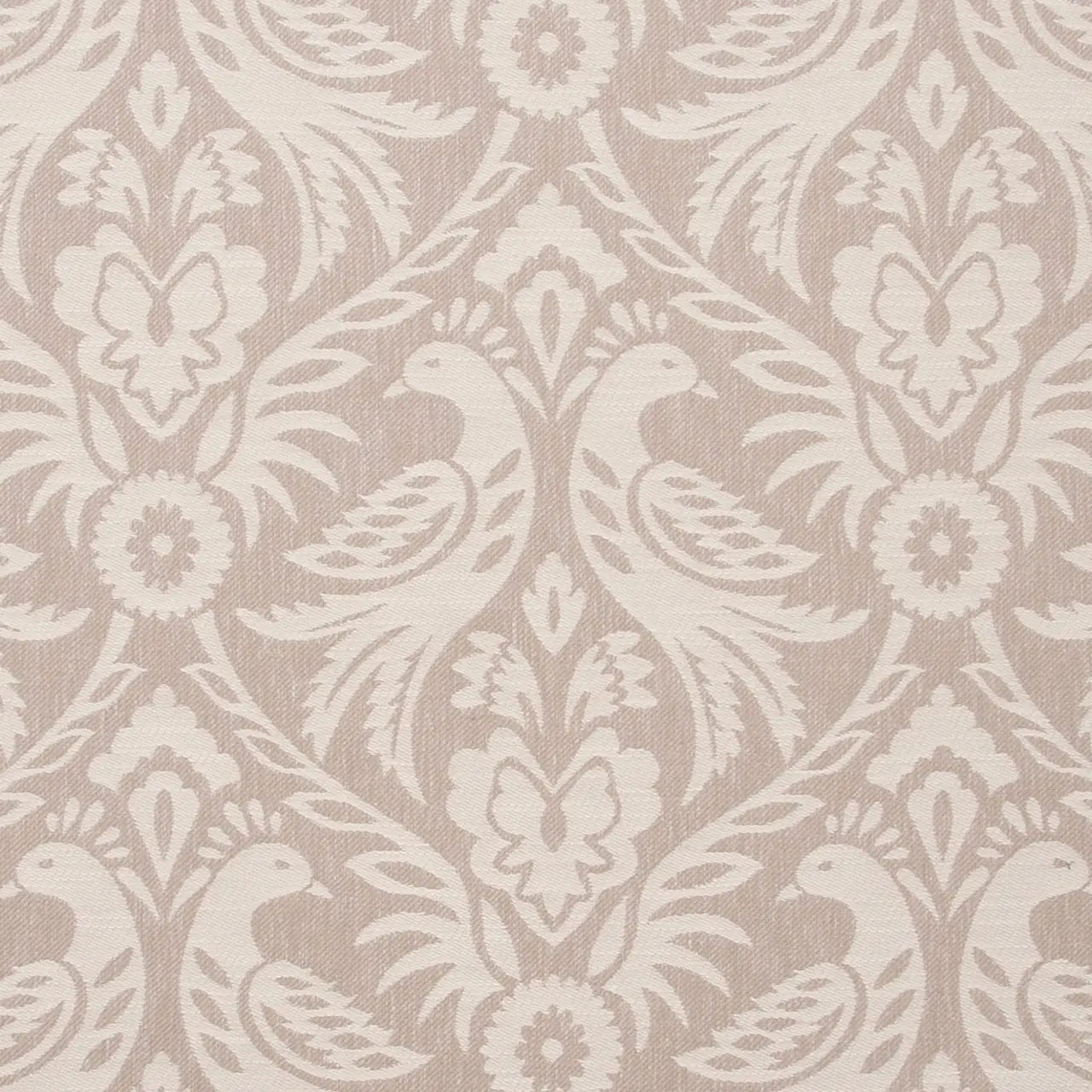 Neutral yet striking, the Made-to-Measure Roman Blind in Harewood Linen features Clarke & Clarke’s iconic bird and floral damask in a versatile linen-tone palette (F0737-05; width: 137 cm; repeats: 34.4 cm × 44.2 cm) . Constructed from 50% polyester, 43% cotton, and 7% linen, it balances softness with longevity.