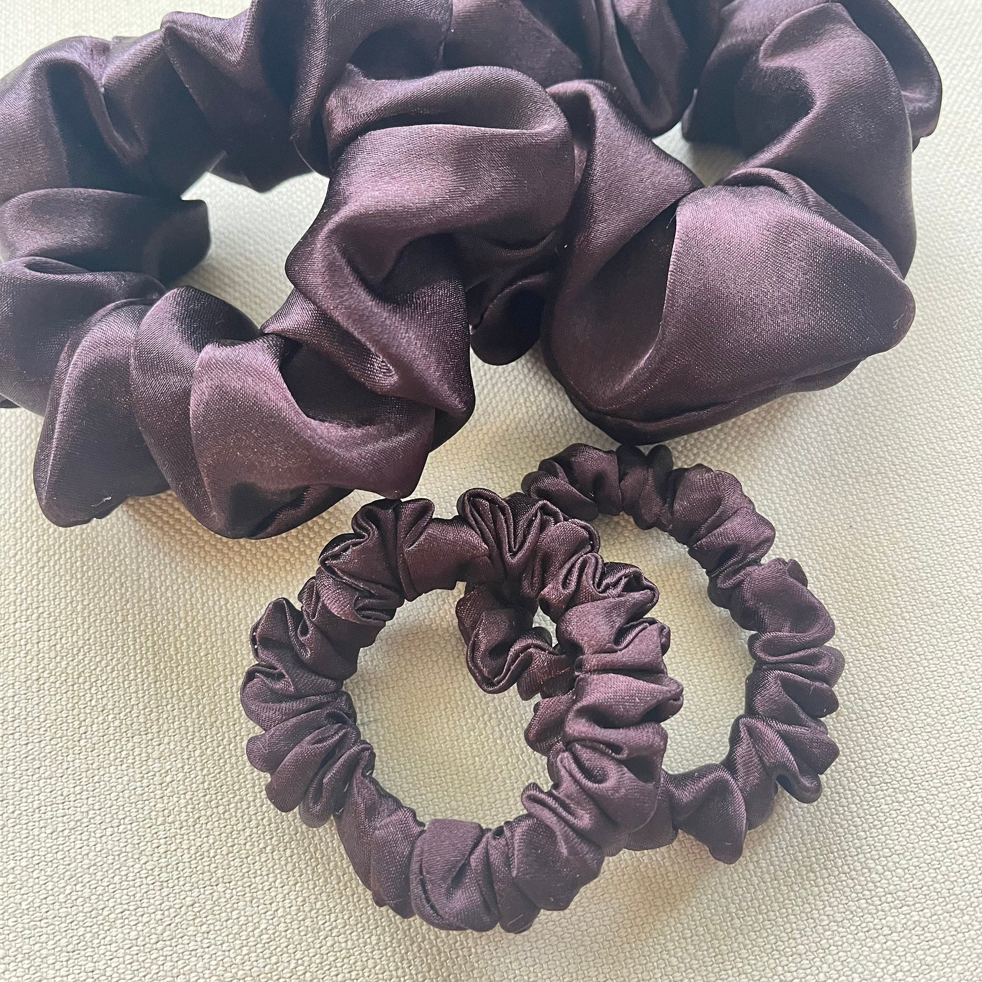 Mocha Satin Scrunchies Set, Wedding Favors or Bridesmaid Gift for her, Handmade Silk Hair Scrunchies Set Oversized