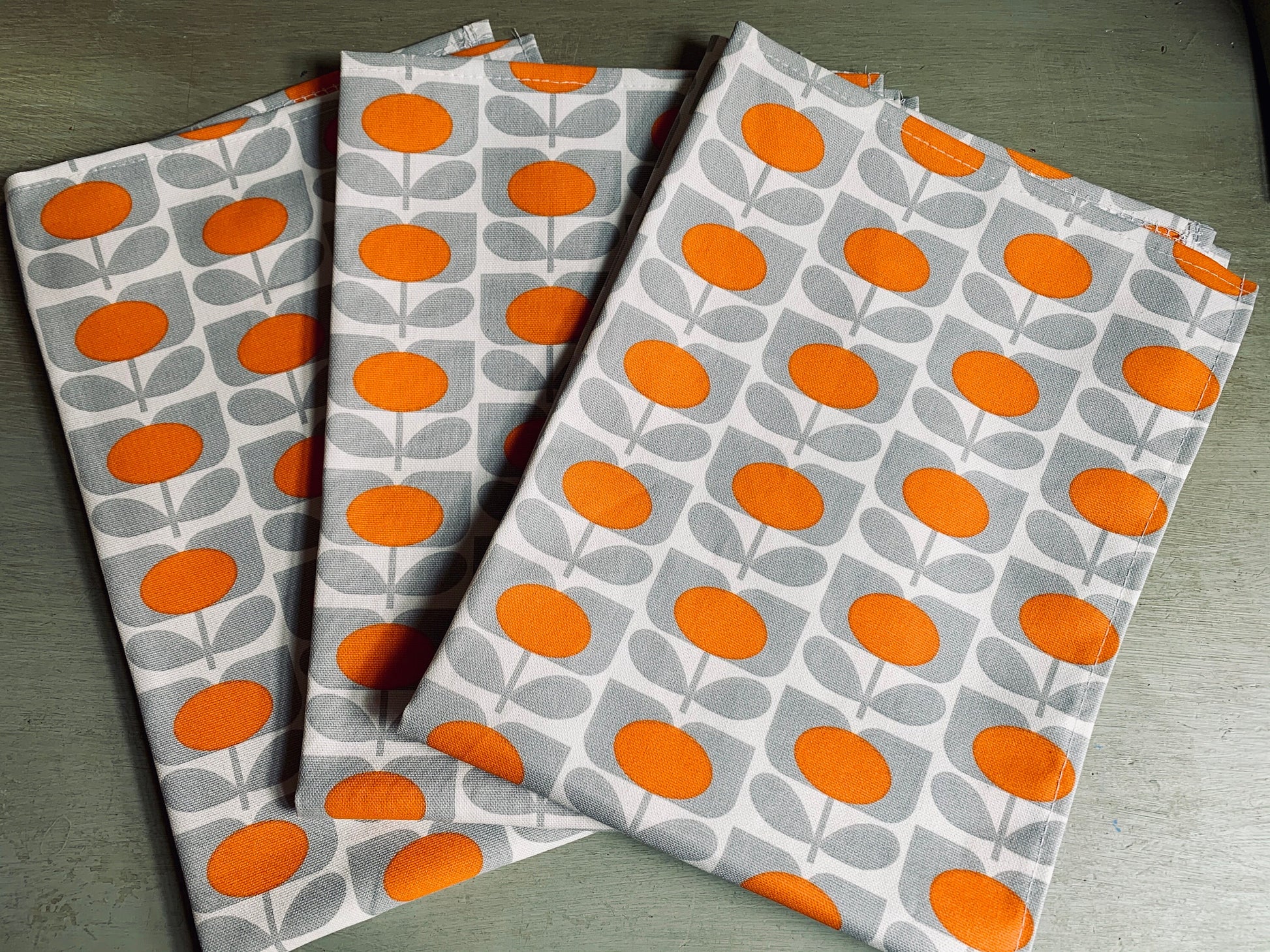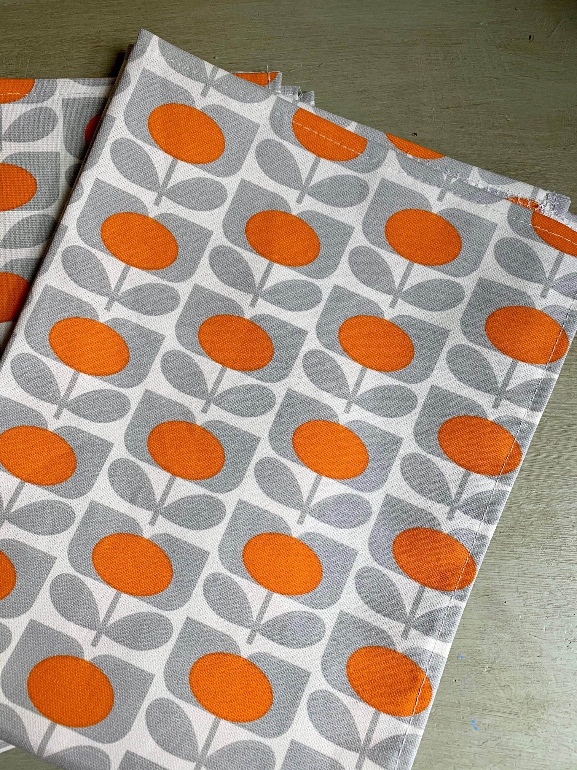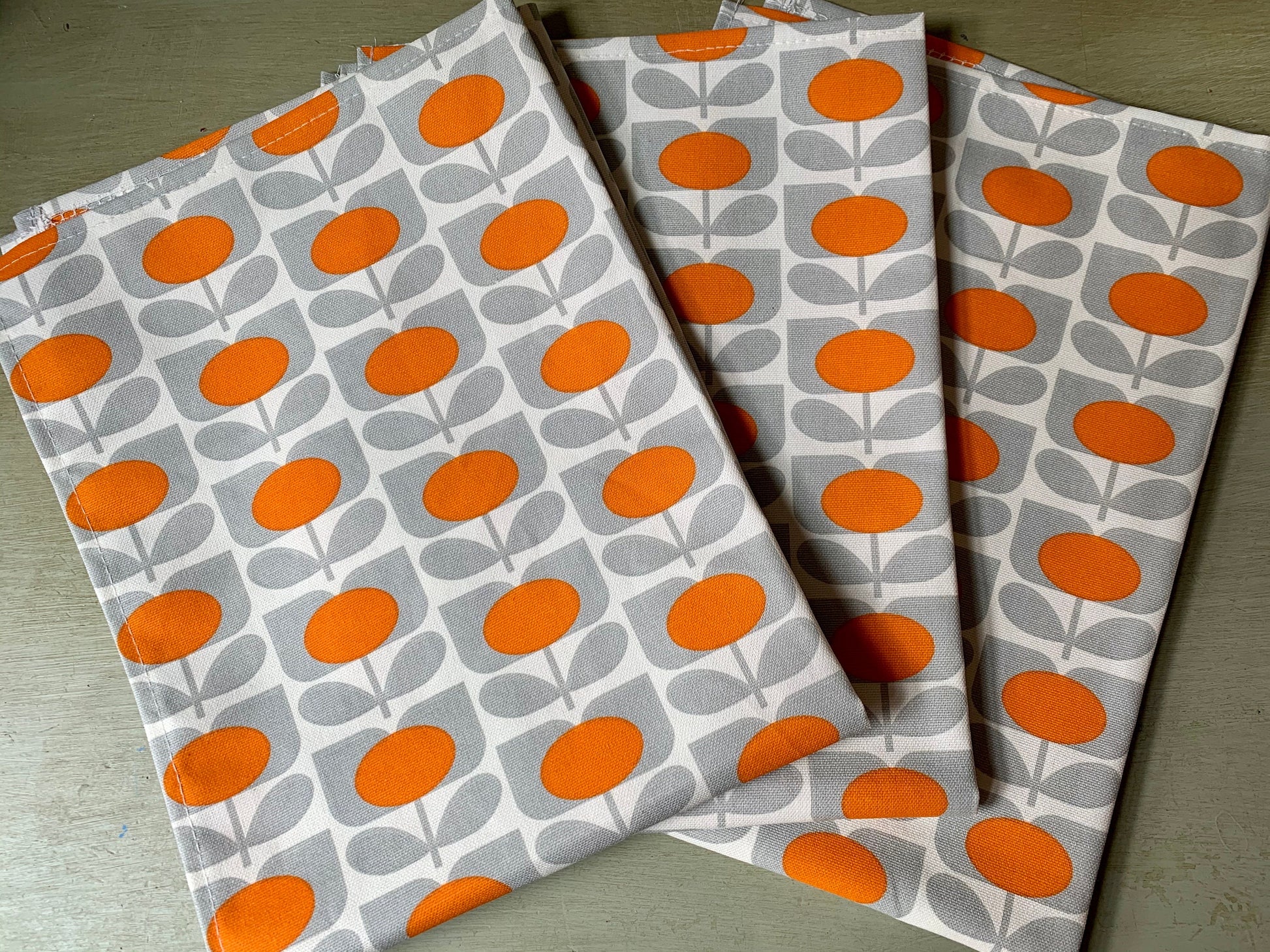 Orla Kiely Grey & Orange Flower Tea Towels: Retro Kitchen Decor
