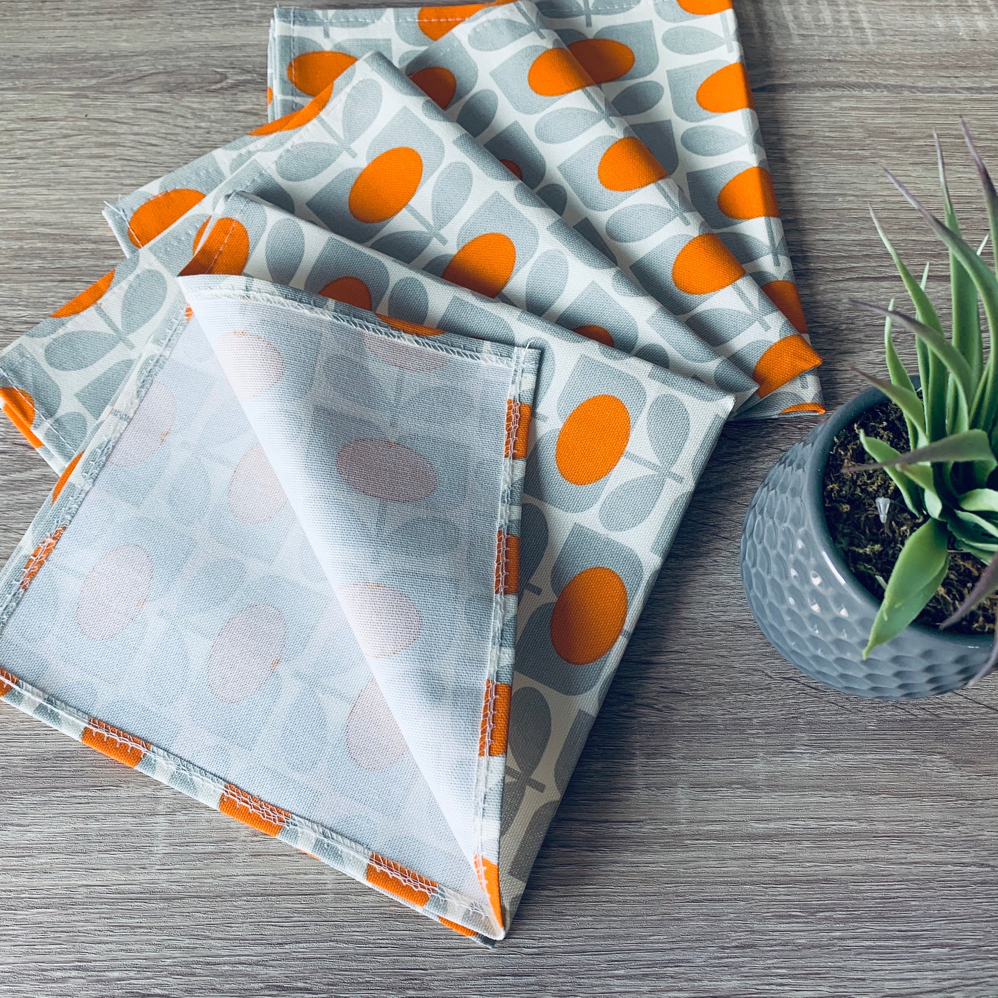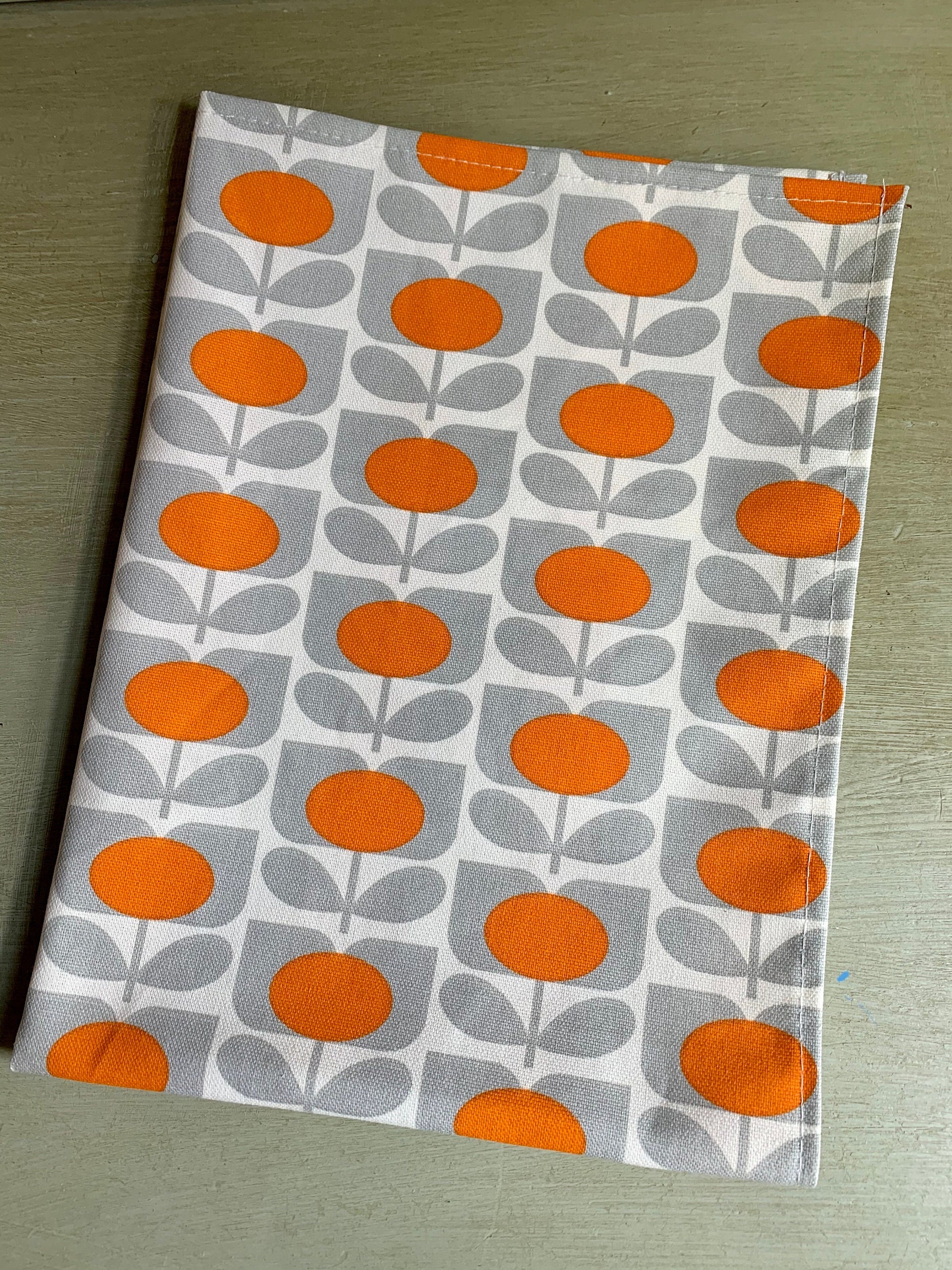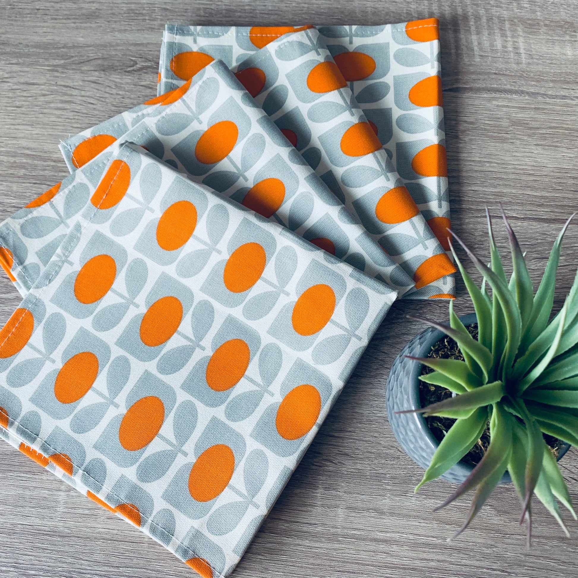 Orla Kiely Grey & Orange Flower Tea Towels: Retro Kitchen Decor