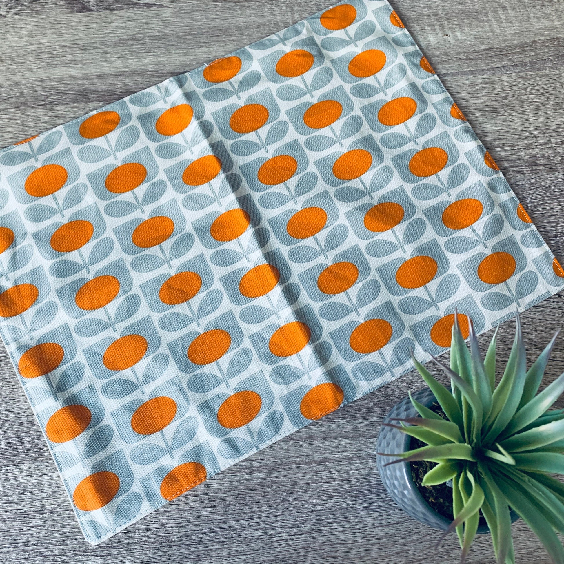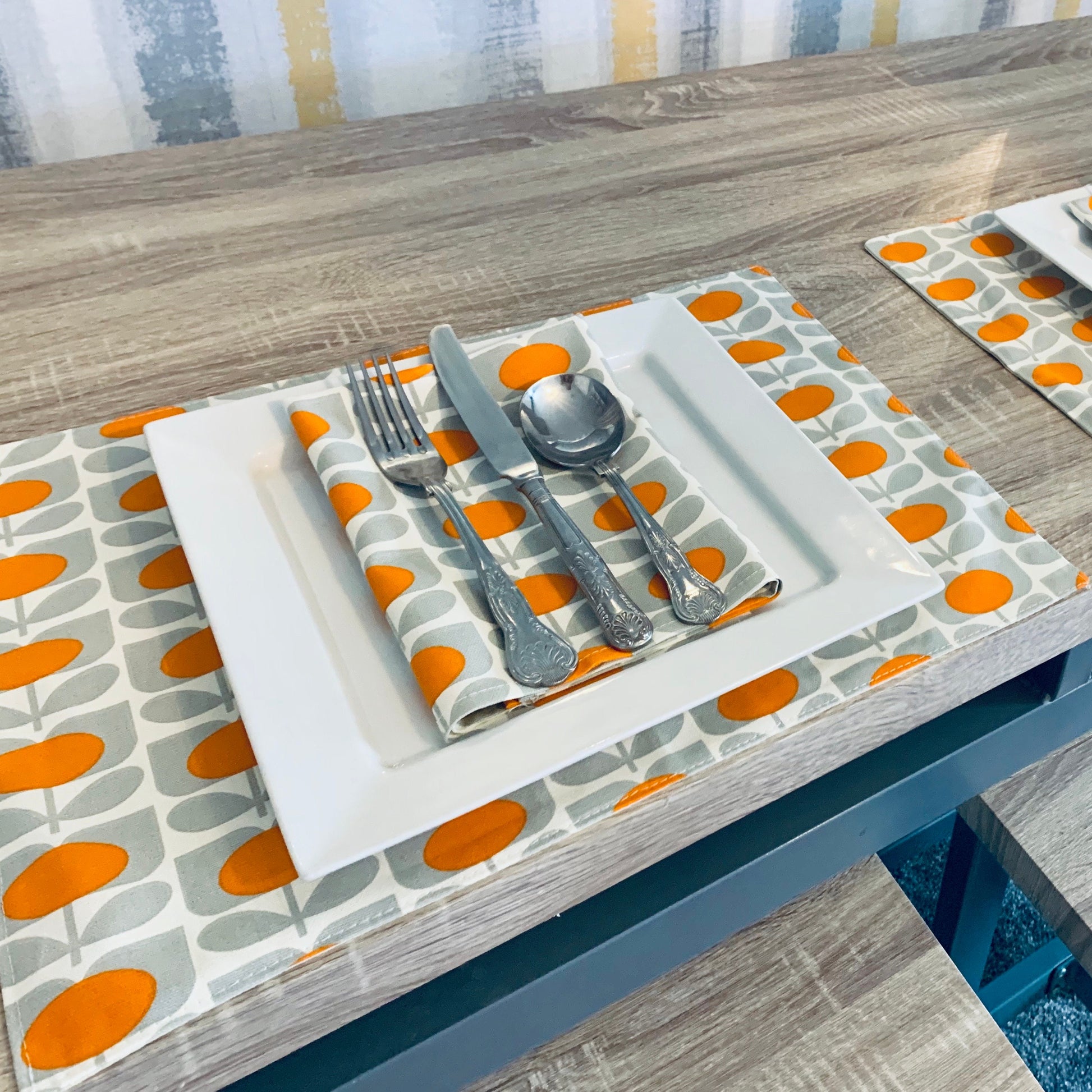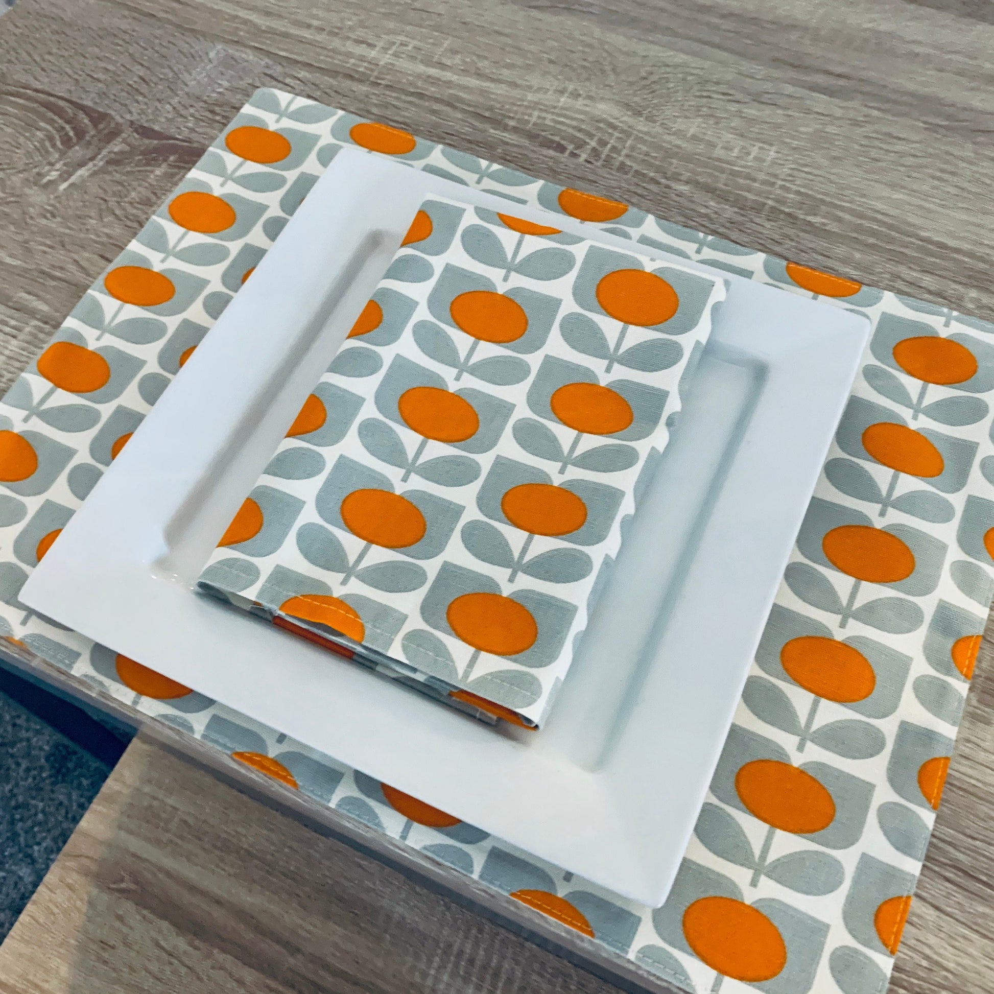 Orla Kiely Orange & Grey Flowers Table Linen, Placemat Napkins: Retro Home Decor