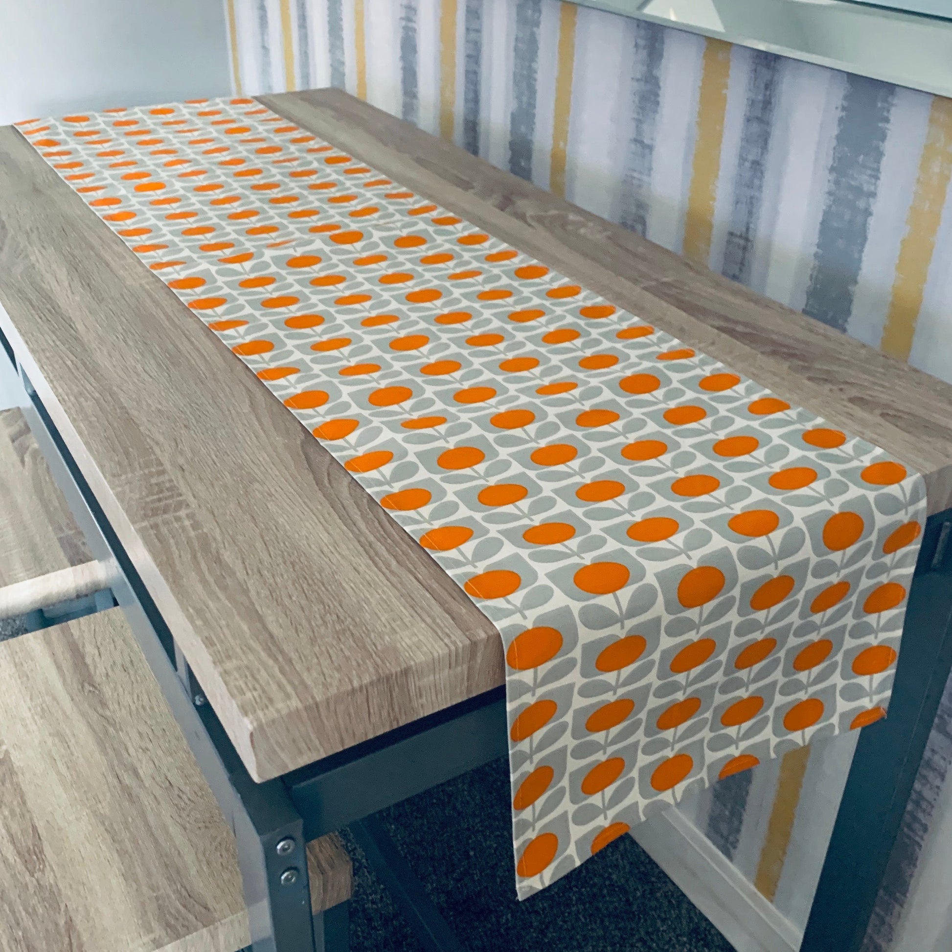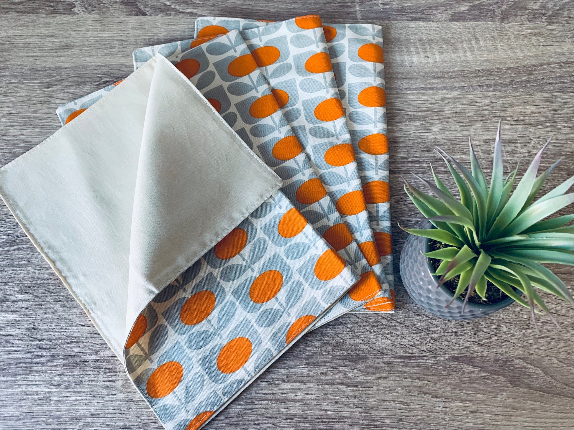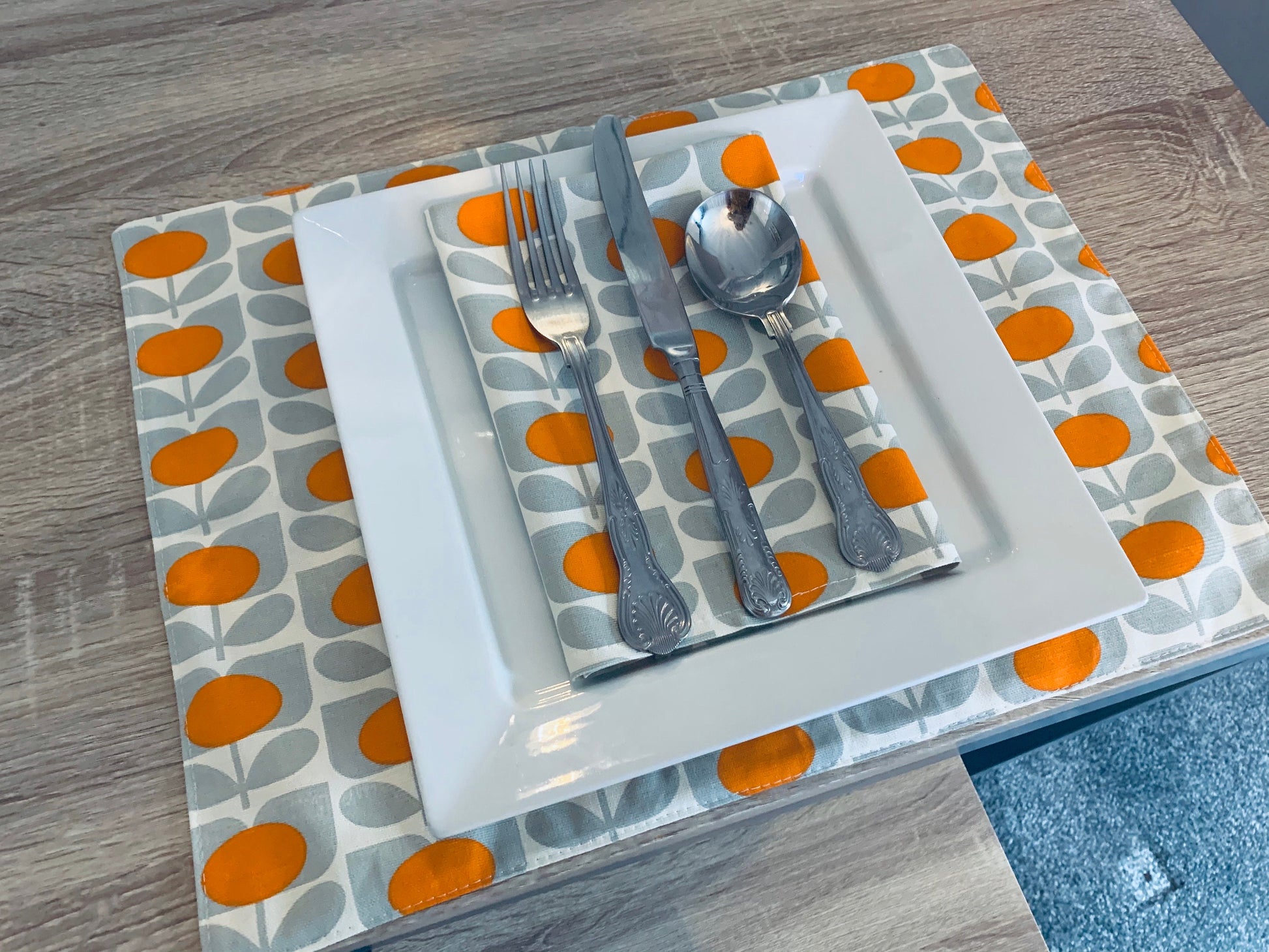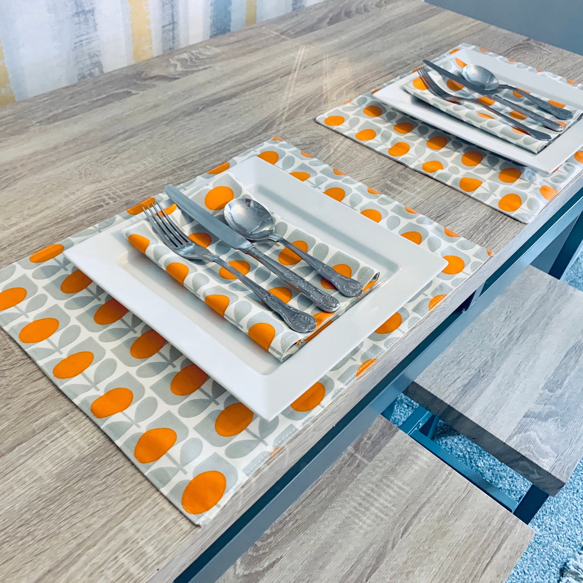 Orla Kiely Orange & Grey Flowers Table Linen, Placemat Napkins: Retro Home Decor