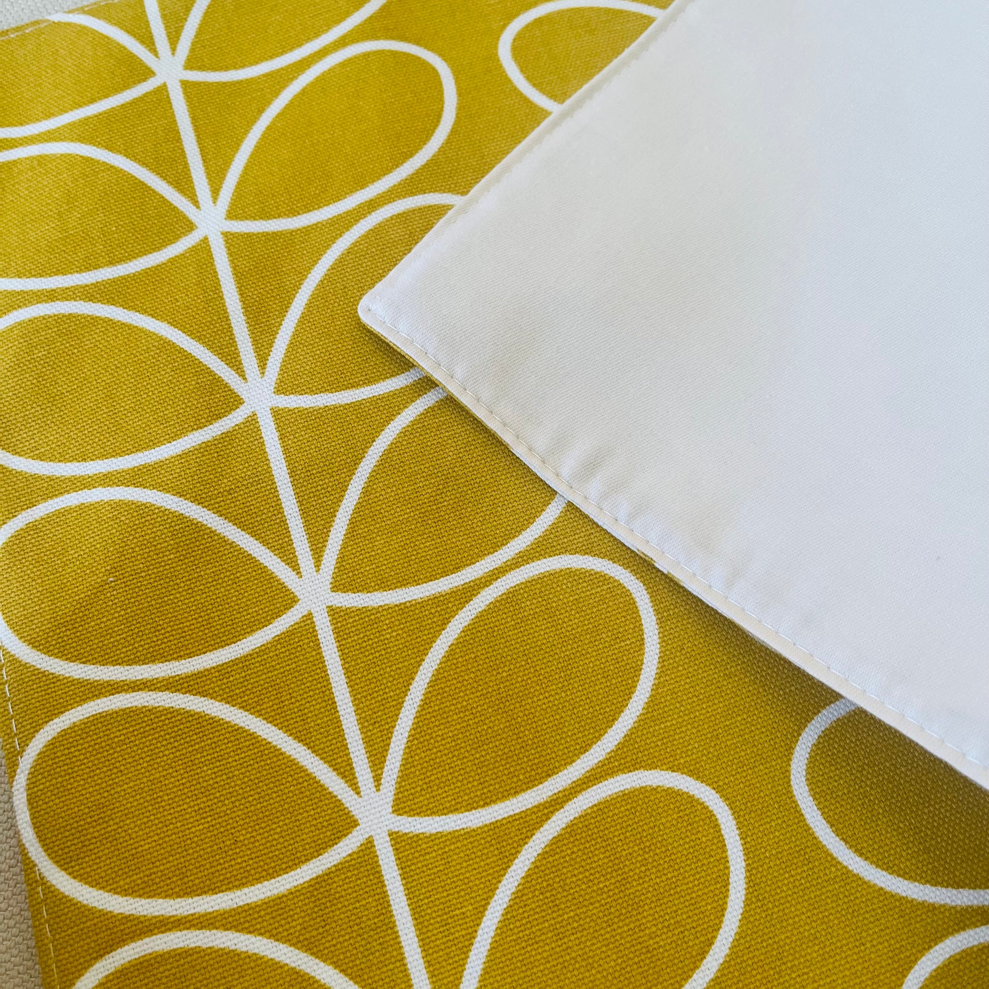 - Placemats: Orla Kiely cotton top layer, premium ivory 100% cotton underside