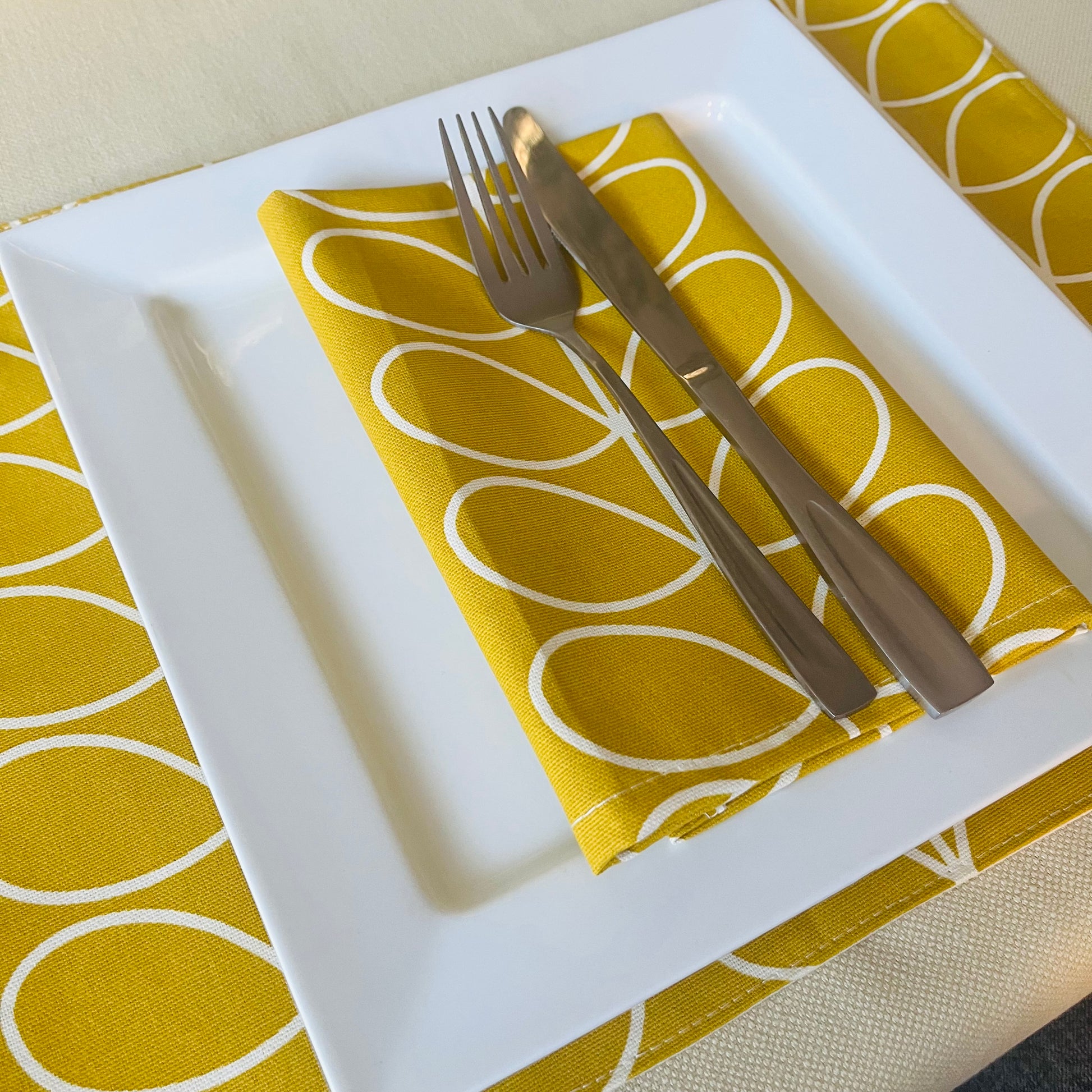 Orla Kiely Yellow Stem Table Linen, Placemat Napkins: Retro Home Decor