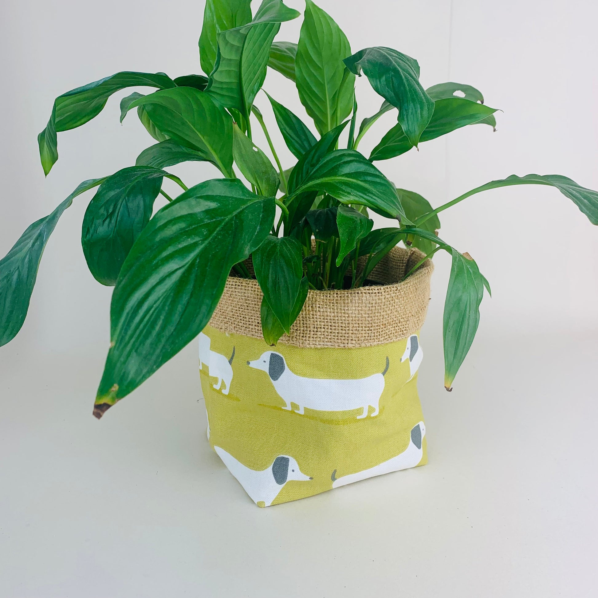 Yellow Dachshund Plant Pot Covers: Farmhouse Decor, Multiple Sizes
